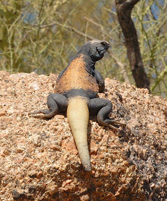 This is the first time I've seen Chuckwallas at Canyon Lake. I was lucky enough to see a third one on the rocks near the marina. I learned later that Chuckwallas are the second largest lizards in the United States, just behind the Gila Monster, both of which are very common in Arizona.
